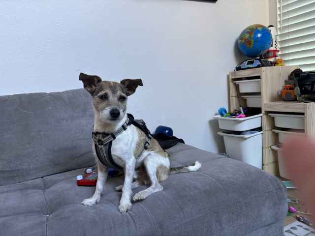 Name: Oakley Palma Garcia Microchip #: 606860634 Species: Dog Breed: Jack russell terrier mixe Gender: M